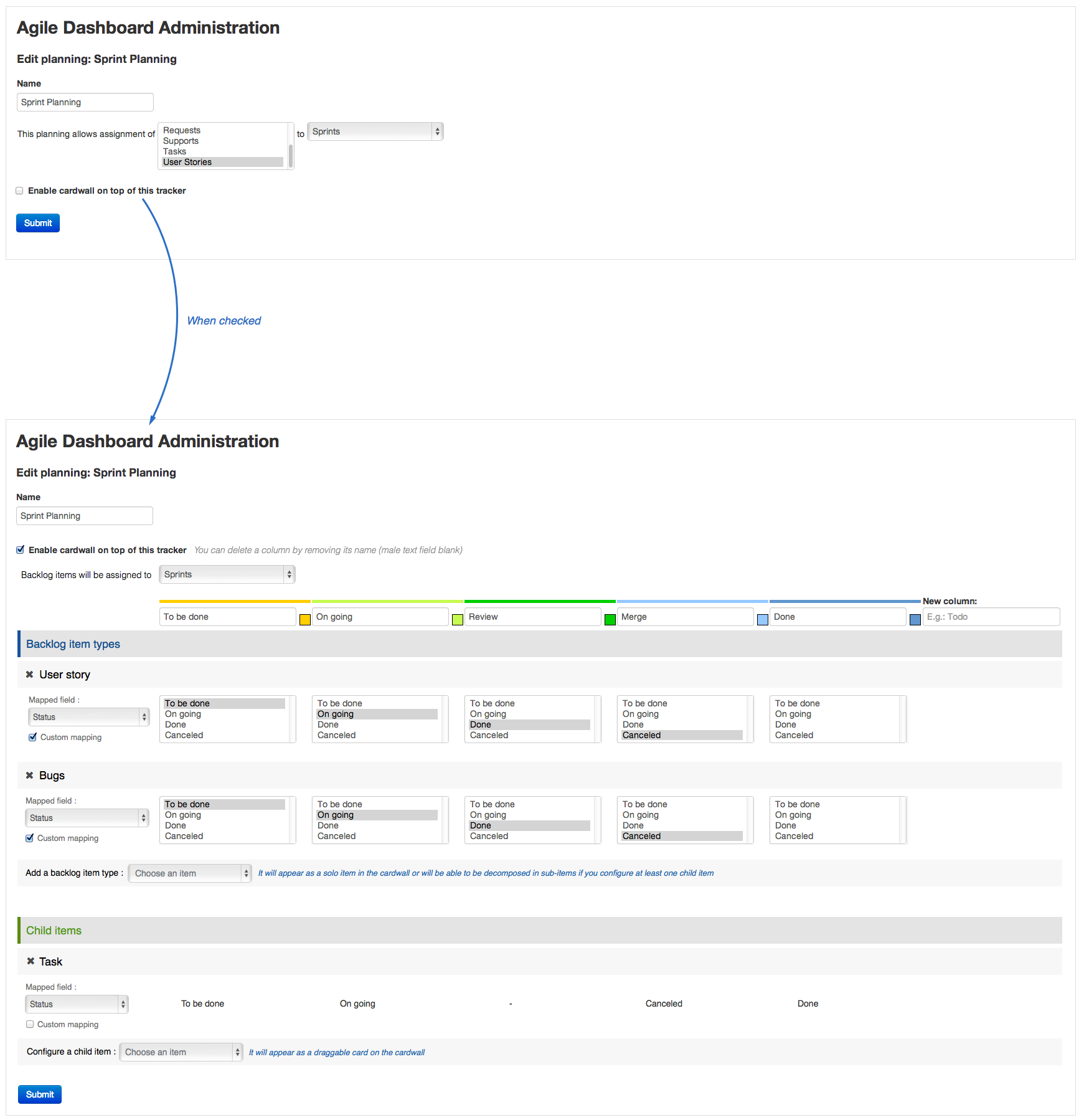 • to make explicit the association between trackers to be displayed and cardwall (I need to select I want to see/manage Bugs, Test Case and stories on my cardwall) -