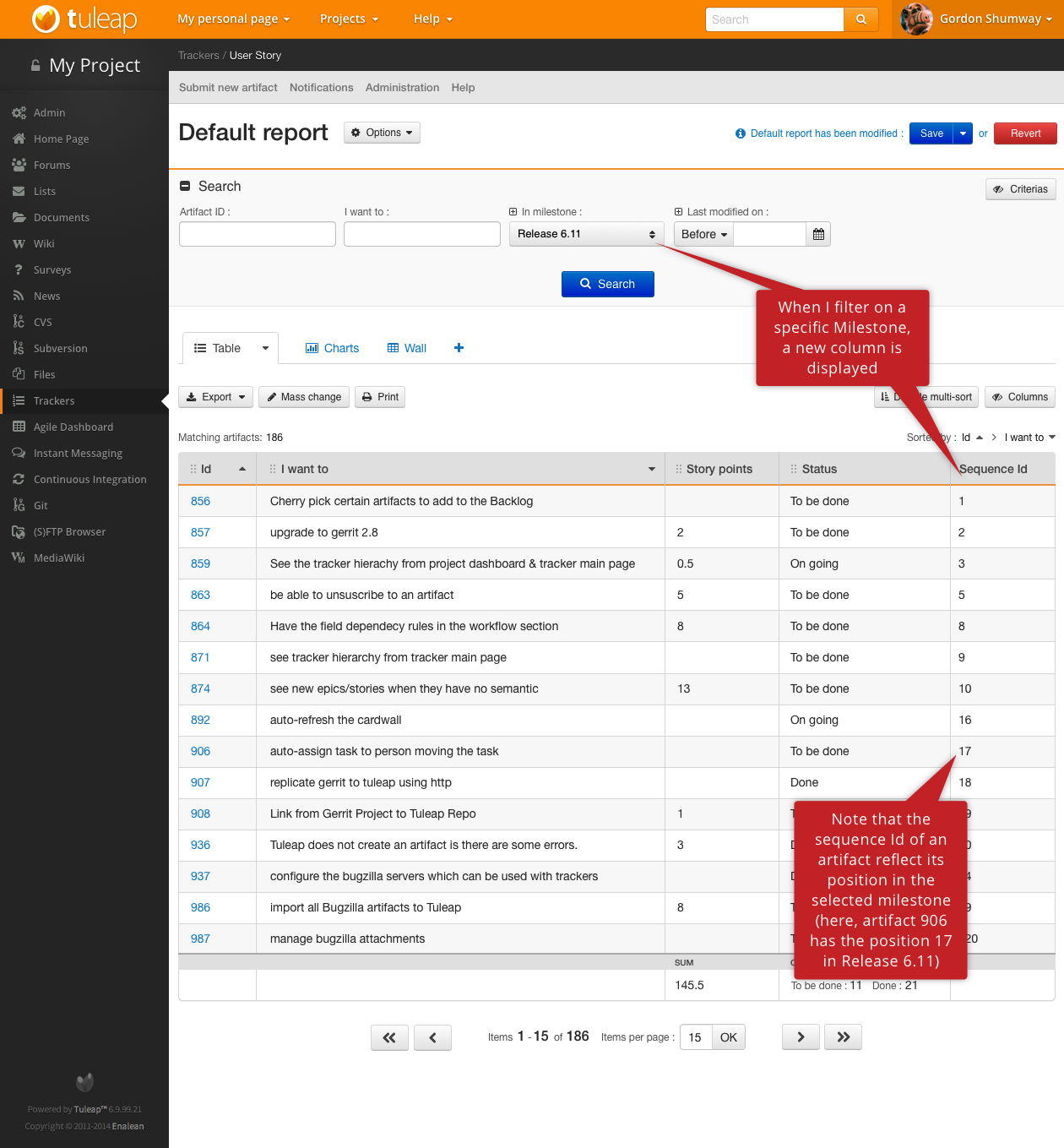 For instance, if my release is made of Sprints, when I filter on "Sprint A" (a submilestone of Release 6.11), the sequence ID starts at #1 too: