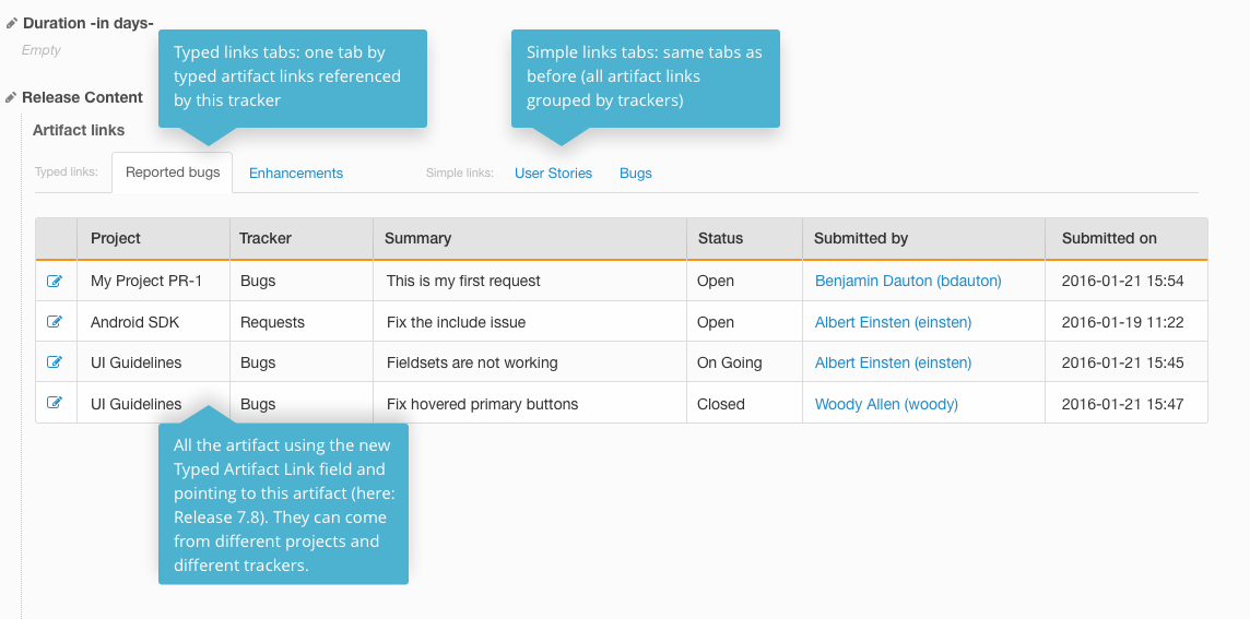 - Site administrator can define new type nature (eg reported_in, fixed_in, covers, etc). The definition of a new nature includes: